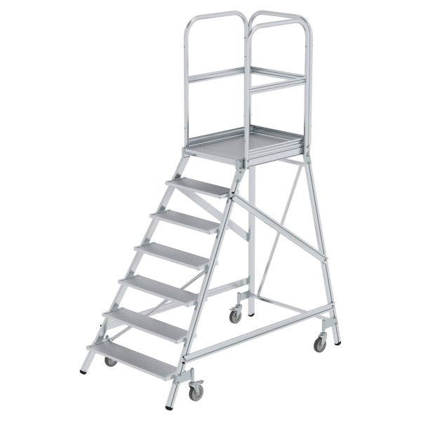 MUNK Podestleiter fahrbar Aluminium geriffelt 7 Stufen