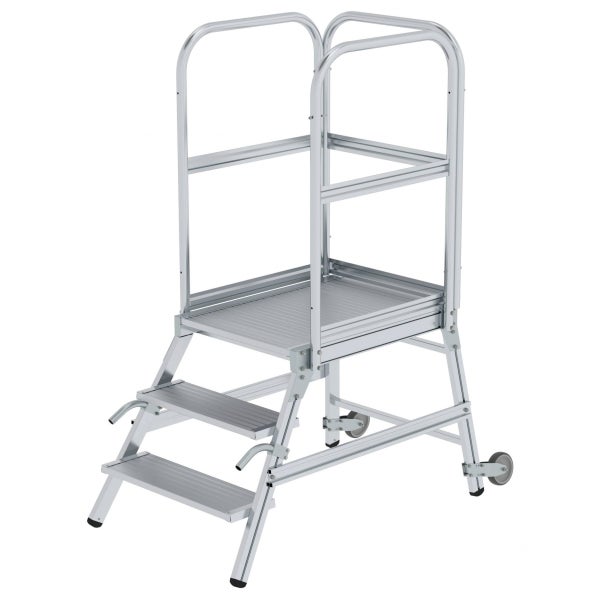 MUNK Podestleiter mit Rollen und Griff Aluminium geriffelt 3 Stufen