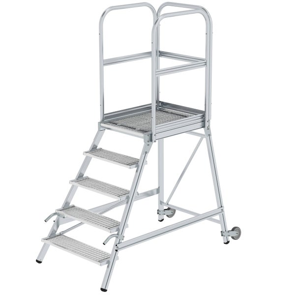 MUNK Podestleiter mit Rollen und Griff Stahl-Gitterrost 5 Stufen