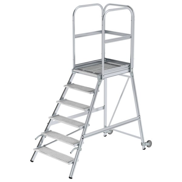 MUNK Podestleiter mit Rollen und Griff Stahl-Gitterrost 6 Stufen