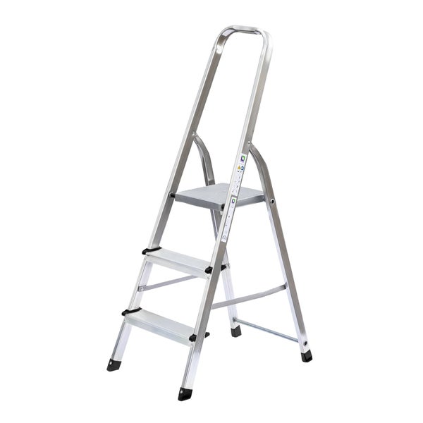 Einseitig begehbar Holme aus Rechteckprofilen 80 mm tiefe Stufen Kunststoff-Stufenabschlüsse Sicherheitsplattform Leiterschuhe an den unteren Holmenden Ab Größe 5 mit Perlongurten als Spreizsicherung Holmabmessungen: Aufstieg: 40 x 20 mm, Stützteil: 30x 20 mm
