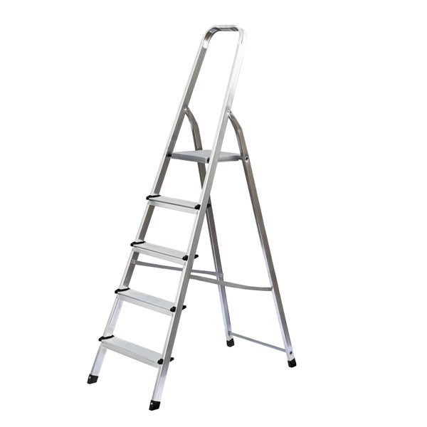 Einseitig begehbar Holme aus Rechteckprofilen 80 mm tiefe Stufen Kunststoff-Stufenabschlüsse Sicherheitsplattform Leiterschuhe an den unteren Holmenden Ab Größe 5 mit Perlongurten als Spreizsicherung Holmabmessungen: Aufstieg: 40 x 20 mm, Stützteil: 30x 20 mm