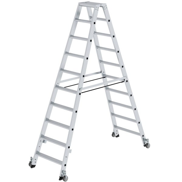 MUNK Stehleiter beidseitig begehbar mit Rollen 2x10 Stufen