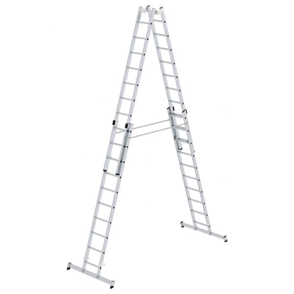 GS-geprüft, entsprechend europäischer Norm DIN EN 131, Betriebssicherheitsverordnung (BetrSichV), TRBS 2121, Handlungsanleitung BGI 694 und geltenden Unfallverhütungsvorschriften Treppengängig Höhenverstellbar von Hand von Sprosse zu Sprosse Hohe Standsicherheit durch Spreizsicherung mit 2 hochfesten Perlongurte Bei Ausführung mit Nivello-Traverse zusätzlich: Jetzt standesgemäß: Mit 2 Stück 0,85m bzw. 1,10m breiter Nivello-Traverse und beidseitig rutschsicheren nivello-Leiterschuhen für extra sicheren Stand und hohe Arbeitssicherheit. Die nivello-Traverse liegt lose bei und wird zweifach am unteren Holmende verschraubt. Sprossenabstand: 280 mm