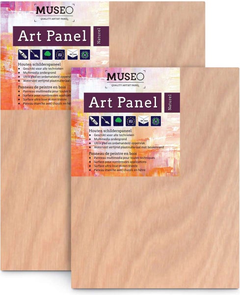 Zum Bemalen von Holz eignen sich die Art Panels von Museo optimal. Das Museo Art Panel ist eine ultraglatte und unbehandelte Holzplatte, ideal zum Bemalen. Die Holzplatte ist für alle Techniken, alle Farbarten und andere Zeichenmedien geeignet. Das Holz kann mit einer Gesso-Grundierung behandelt werden. Benutze die Platte mit Acrylfarbe, Ölfarbe, Gouache etc. Das Holz ist hochwertig.