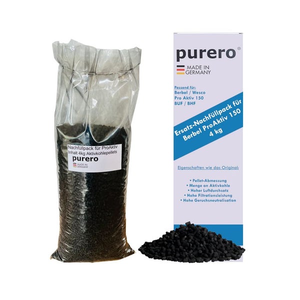 *mit dem berbel Umluftfilter | Hybridfilter **Da die Downline Compact/Performance/Infinity mit zwei Filtern ausgestattet ist, benötigen Sie zwei 5kg für einen Kohlewechsel *** Bis Mitte 2015 wurden die Inselhauben Skyline und Skyline Edge mit zwei eingebauten Umluftfiltern produziert. In diesem Fall sind 5kg Aktivkohle notwendig. Sollten Sie Ihren Skyline Dunstabzug in 2015 erworben haben, überprüfen Sie bitte vor Ihrer Bestellung, ob Sie eine Skyline/Skyline Edge mit zwei Umluftfiltern besitzen, erkennbar ist dies von oben durch je ein Lüftungsgitter auf der linken und rechten Seite. Austauschbar -der Umwelt zuliebe! Mit den praktischen Nachfüllpacks zeigt Purero, dass moderne Küchentechnik und effektiver Umweltschutz sehr gut vereinbar sind. Die Aktivkohle der Umluftfilter kann einfach und kostengünstig ausgetauscht werden. Das schont die Haushaltskasse und die Umwelt. berbel - bewusst pro Natur! Nachfüllpack Aktivkohle aus Kokosnussschale Die Lebensdauer der Purero Aktivkohle ProAktiv liegt bei ca. 2-3 Jahre je nach Kochverhalten. Danach empfiehlt sich ein Austausch, der dank durchdachtem Konzept ebenso einfach wie genial funktioniert: Die alte Aktivkohle wird getauscht, das Gehäuse bleibt erhalten. Echt praktisch! Wer nach dem Kochen die automatische Nachlauffunktion nutzt, kann die Lebensdauer der Aktivkohle noch weiter optimieren.Geeignet für folgende Geräte