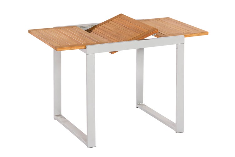 Naxos Balkonausziehtisch, 80 (120) x 70 cm, Silber, Aluminium mit Akazie