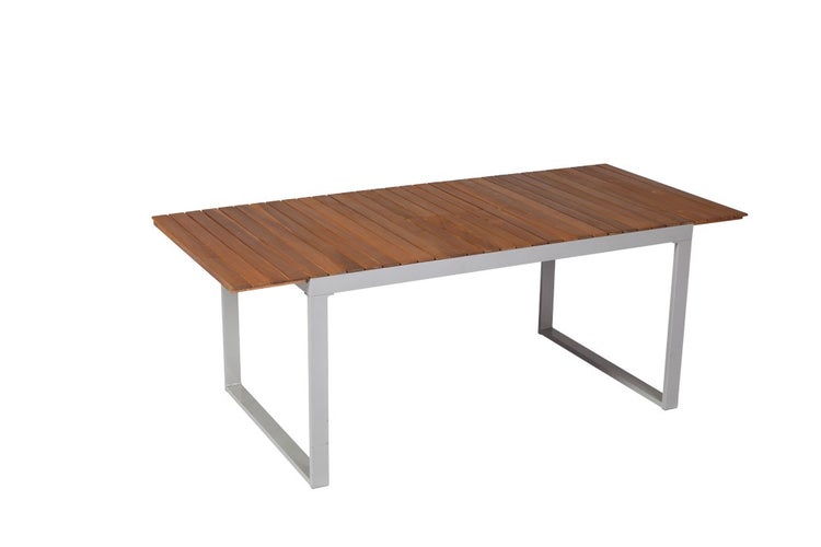 Naxos Gartentisch, ausziehbar, 150 (200) x 90 cm, Silber, Aluminium mit Akazie