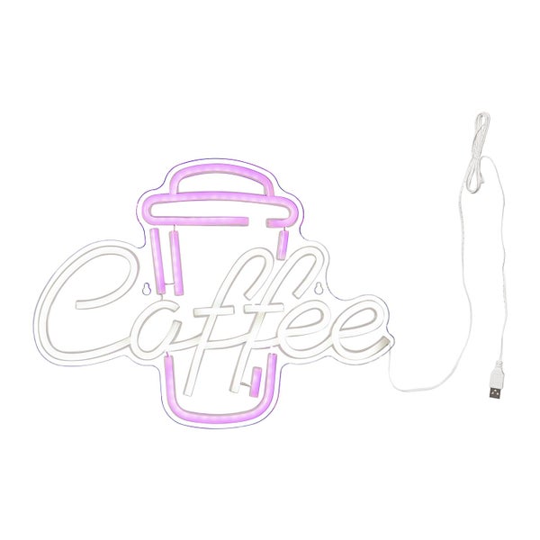 Neonschild ,Plexy Coffee', Plexiglas, USB, pink-weiß, 40x30cm