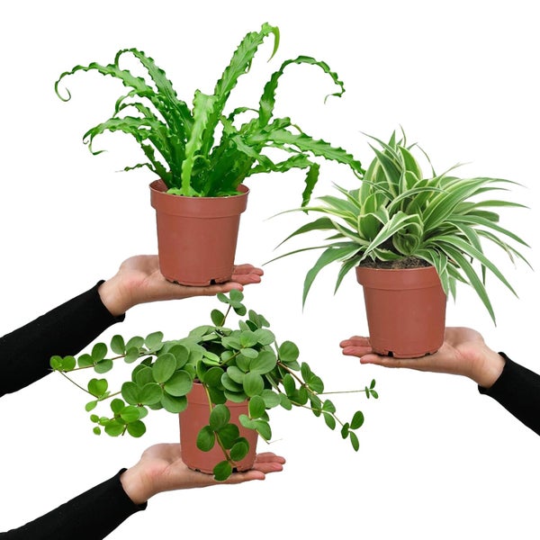 Nestfarn, Grünlilie & Zwergpfeffer – Hängende Zimmerpflanzen Katzenliebe | Tierfreundliches Set | Höhe 15-30 cm | Töpfe 10,5-12 cm | Green Me Up