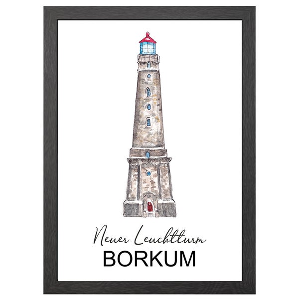 Neuer Leuchtturm Borkum Poster Im A2-Rahmen