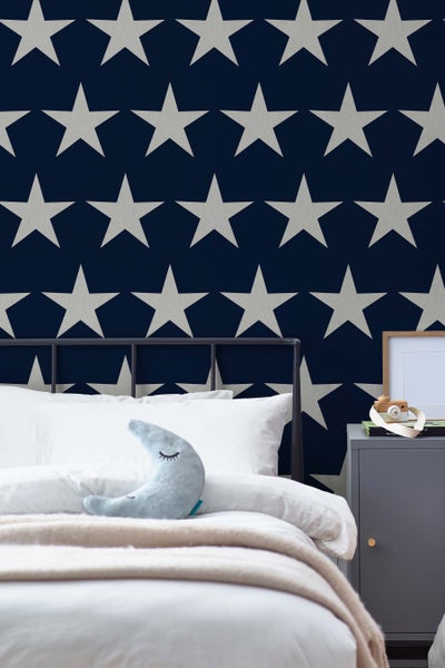 Stars Navy Blue bringt Charakter und Stil in jedes Kinderzimmer. Der Sternendruck erwacht in einer gewagten und lustigen Farbkombination aus tiefem Marineblau und verwitterten weißen Sternen zum Leben. Diese Tapete ist auf einem matten Papier gedruckt und hat einen modernen Touch.