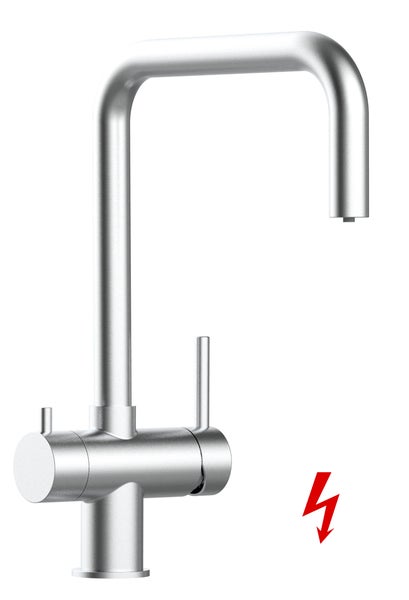 NIEDERDRUCK 3 Wege Wasserhahn Küchenarmatur Spültischmischer, Edelstahl Massiv aus Chirurgiestahl, mit 360° schwenkbarem Auslauf - Komplett mit Durchflussreduzierer auf 7liter pro min. um Ihren Niederdruck Boiler vor Beschädigungen zu schützen! - für Kalt-,Warm- und Filterwasser mit separatem Ventil am Hahn und separatem Kanal für gefilterte Wasserentnahme