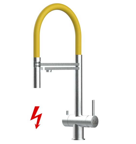 NIEDERDRUCK 3 Wege Wasserhahn Küchenarmatur Spültischmischer, Edelstahl Massiv aus Chirurgiestahl, mit 360° schwenkbarem Auslauf und abnehmbare 2 strahl Handbrause - Komplett mit Durchflussreduzierer auf 7liter pro min. um Ihren Niederdruck Boiler vor Beschädigungen zu schützen! - für Kalt-,Warm- und Filterwasser mit separatem Ventil am Hahn und separatem Kanal für gefilterte Wasserentnahme