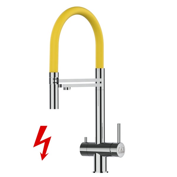NIEDERDRUCK 3 Wege Wasserhahn Küchenarmatur, Edelstahl Massiv mit 360° schwenkbarem Auslauf, abnehmbare 2 strahl Handbrause, Hochglanz / Gelb