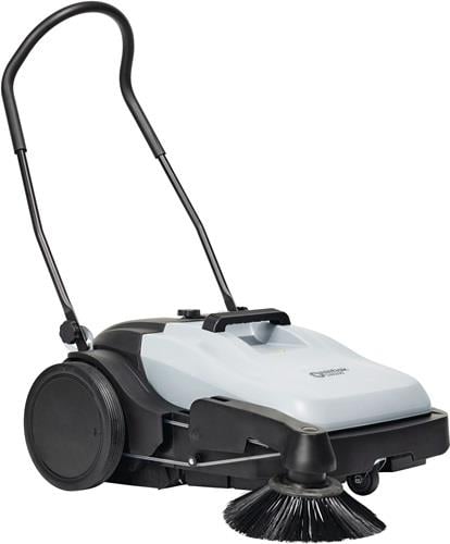 manueller Betrieb Überwurfkehrsystem werkzeuglos höheneinstellbare Hauptkehrwalze, beidseitig angetrieben klappbarer Schubbügel herausnehmbarer Schmutzsammelbehälter zwei Filter für geringe Staubbelastung korrosionsfreier Rahmen Weitere technische Eigenschaften: Breite: 850mm Länge: 1470mm Höhe: 1120mm Lieferumfang : 1 Hauptkehrwalze, 1 Seitenbesen, 2 FilterMerkmale Flächenleistung max.: 2800 m²/h Arbeitsbreite: mit 1 Seitenbesen 700 mm Behältervolumen: 38 l Gewicht: 19,5 kg Marke: NILFISK