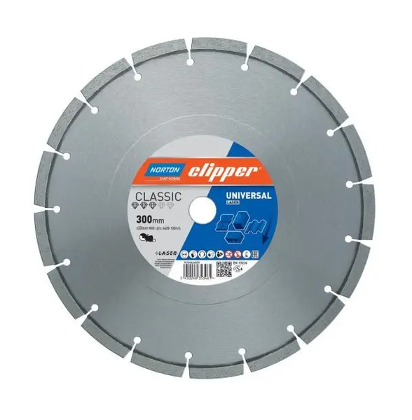 CLASSIC UNIVERSAL LASER ist eine preiswerte lasergeschweißte Diamantscheibe zum Trocken- oder Nassschneiden. Anwendung: Allzweckbaumaterialien.