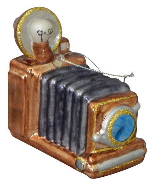 Nostalgische Kamera 10cm, Glasornament, mundgeblasen und handekoriert, 1 Stck., Weihnachtsbaumkugeln, Christbaumschmuck, Weihnachtsbaumanhänger