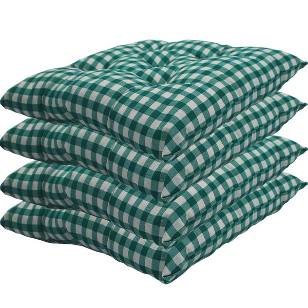 NYVI Stuhlkissen ComfySeat 38x38 cm - 4er Set - Sitzkissen für Gartenstühle - Grün kariert