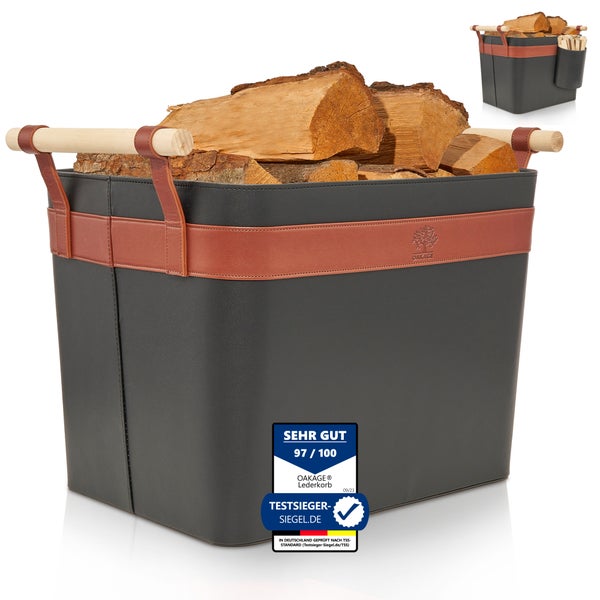 OAKAGE® LuxeLeather Holzkorb Leder- mit ausreißsicheren Holzgriffen- 50x40x35cm