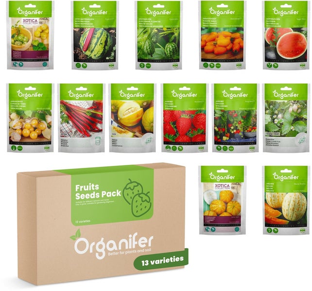 Entdecken Sie den Garten der Freuden mit Organifers Obstsaatgutpaket – 13 üppige Sorten. Begeben Sie sich auf eine zauberhafte Reise durch eine Symphonie aus einzigartigen und üppigen Früchten mit unserem Obstsaatgutpaket, sorgfältig zusammengestellt, um Ihren Garten mit einer Fülle köstlicher Aromen zu bereichern. Jede Saatgutvariante wurde sorgfältig aufgrund ihrer leichten Anbauweise und Eignung für verschiedene Jahreszeiten ausgewählt, sodass Sie einer reichen Ernte sicher sein können. Die Samen sind praktisch verpackt, was die Aufbewahrung und Organisation Ihrer Sammlung erleichtert.