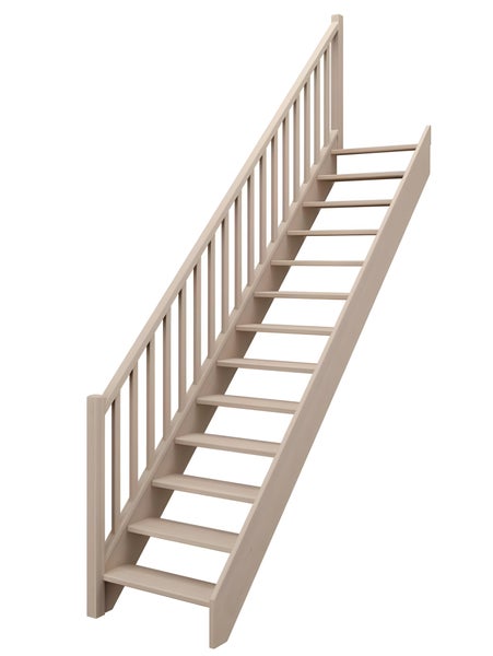 Offene gerade Treppe von HandyStairs „Vega80“ – 280 cm hoch – 13 Stufen aus Kiefernholz – mit Handlauf