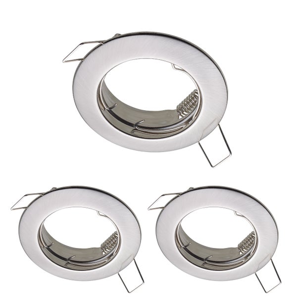 Oktaplex 3er Set Sedan Spotrahmen flach für GU 10 & LED Module - Deckenspots 60mm Lochmass Edelstahl gebürstet Einbauleuchte rund Deckenstrahler