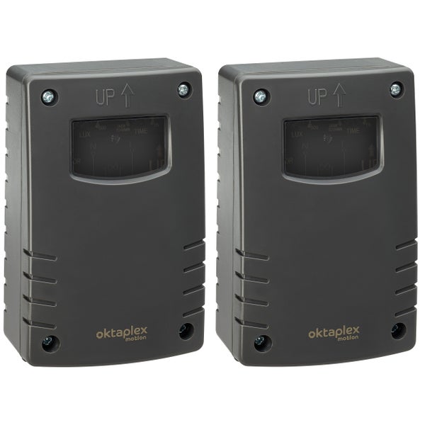 2x Oktaplex Bela Dämmerungsschalter anthrazit mit Timerfunktion und inklusive Befestigungsmaterial.