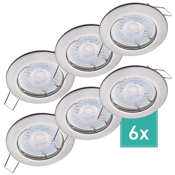Oktaplex Lighting 6er Set LED Einbaustrahler 230V - Stufenlos dimmbar - 5W 3000K 380lm Warmweiß 110° - Deckenspot Edelstahl gebürstet Lochmaß 60mm
