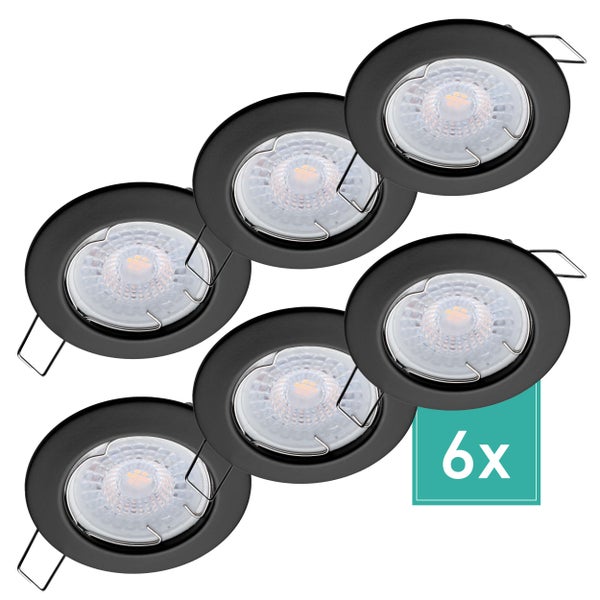 Oktaplex Lighting 6er Set LED Einbaustrahler Sedan - mit LED Modul 4,8W 2700K 230V 380lm Warmweiß 110° - Spot Schwarz Lochmaß 60mm