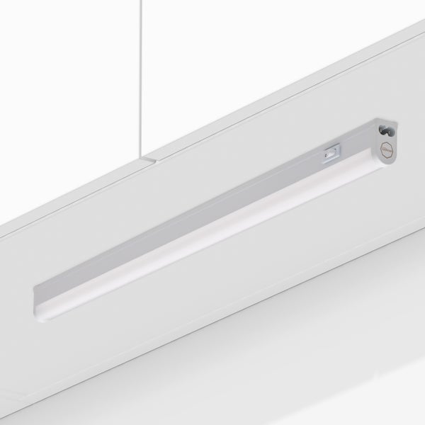 Im Lieferumfang enthalten ist die Unterbauleuchte sowie ein 1,8 m langes Anschlusskabel, ein 10 cm langes Verbindungskabel, ein Verbindungselement, Montagebügel sowie passende Schrauben.