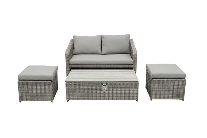 4-teiliges Rattan Sofa Set mit Hubtisch - Perfekt für Ihren Garten oder Balkon