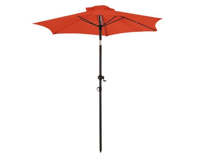 Die leichte Bedienung per Handkurbel ermöglicht ein problemloses Öffnen und Schließen des Marktschirmes. Das dunkelgraue Gestell aus Stahl beinhaltet ein 38 mm dickes Standrohr, welches sechs Streben miteinander verbindet. Der Schattenspender überzeugt mit einem Schirm, welcher aus 100% Polyester besteht. Durch ein verchromtes Knick-Gelenk, welches kinderleicht durch einen Druckknopf zu bedienen ist, lässt sich der Marktschirm individuell einstellen und schützt somit auch vor schräg einfallenden Sonnenstrahlen. Dazu kommt ein UV-Schutz von 50. Der air-vent ist für das Entweichen von leichten Windstößen verantwortlich und sorgt für einen festen Stand. Es kann zusätzlich ein Kreuzständer erworben werden. Es ist dringend zu empfehlen den Ständer mittels der vorgefertigten Bohrungen zu verankern.