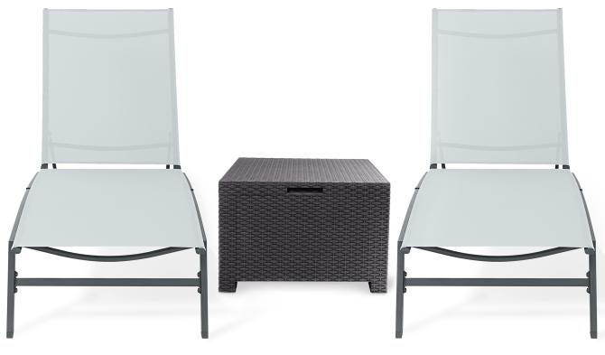 Ondis24 Sonnenliegen 2er Set mit passendem Beistelltisch Kissenbox