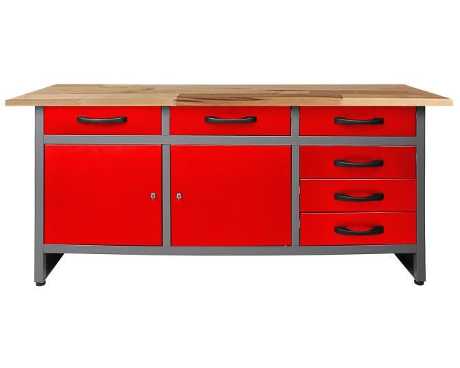 Ondis24 Werkbank Karsten 160 cm rot, 6 Schieber, 2 Tür, Werkstatteinrichtung