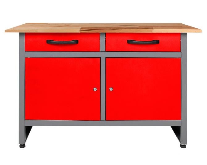 Ondis24 Werkbank Werner 120 cm rot, 2 Schieber, 2 Türen