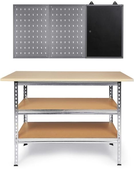 Ondis24 Werkstatt Set 120 cm Werkbank Uwe mit Hängeschrank und Lochwand, Werkstatteinrichtung, Werkbank
