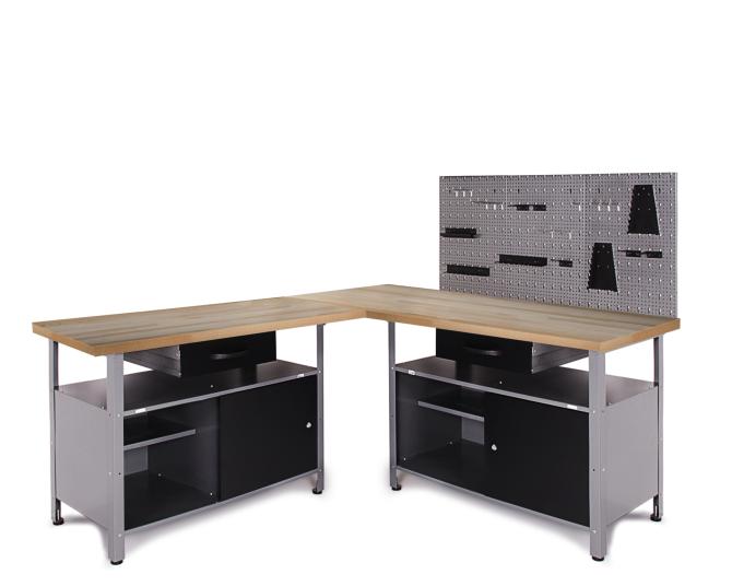Werkstatteinrichtung Ecklösung One - Arbeitshöhe 85 cm - bestehend aus 2 x Werkbank (Klaus), 3 x Lochwand, 1 x Lochwandhaken-SetEs ist immer dasselbe, man baut etwas auf und die Ecke des Raumes ist nicht nutzbar. Hierfür haben wir die passende Lösung parat, mit unserer cleveren Werkstatt Ecklösung bleibt kein Raum ungenutzt. Dank der beiden variabel anordbaren Arbeitsplatten finden auch Sie die perfekte Lösung für Ihre Werkstattecke.Der minimale Platzbedarf für dieses Werkstatteinrichtung beträgt ca. 180 x 180 x 142 (H) cm. Natürlich können Sie die verschiedenen Einzelteile der Werkstatteinrichtung auch getrennt voneinander positionieren, um Ihre Werkstatt ganz individuell nach Ihren Wünschen zu gestalten. Weiterhin ist die Werkstatteinrichtung mit unseren anderen Werkstattartikeln problemlos erweiterbar!Die Werkbank Klaus weist eine Größe von ca. 180 x 60 x 85 (H) cm auf, und bietet somit viel Platz zum Arbeiten. Dabei wiegt die Werkbank nur 32 kg, kann also auch einfach umgestellt werden – und das dank der höhenverstellbaren Füße auch auf unebenem Grund. Werkzeug und Zubehör, das während der Arbeit benutzt wird, wie Papier, Stifte oder Schraubenzieher, müssen Sie nicht auf der Platte liegen lassen. Es kann auch später weggeräumt werden, denn zwischen Arbeitsplatte und Schrankteilen ist eine praktische, offene Ablagefläche. Dort können Sie alles Mögliche bis zum nächsten Einsatz stationieren.Die stabile Holzplatte weist eine Stärke von 27 mm auf und ist aus hochwertigem Buchenholz verleimt - dadurch ist sie top-solideDie Lochwand mit den Maßen von ca. 120 x 1 x 57 (H) cm ist aus Metall und wiegt ca. 3 kg. Sie bietet damit viel Platz, zum Beispiel für unser 22-teiliges Hakensortiment. Sie besteht aus drei Teilen (je ca. 40 x 57 cm), die auch voneinander getrennt an der Wand angebracht werden können. So können Sie ihre Werkstatt ganz flexibel nach Ihren Wünschen einrichten. Die einzelnen Lochwände können Sie mit Schrauben an die Wand dübeln. Außerdem hat jedes Lochwandteil zwei Ösen auf der Rückseite zum Aufhängen. Die Lochwandhaken sind aus Metall und bieten Platz für 28 Bohrer, 16 Maulschlüssel oder Ringschlüssel, 20 Schraubendreher sowie 5 verschiedene Zangenhaken und 12 Einfachhaken.Sie haben Gefallen an unserer Werkstatteinrichtung gefunden? Dann bestellen Sie sich noch heute Ihre eigene Werkstatteinrichtung direkt zu Ihnen nach Hause!Alle Maßangaben sind Circa Angaben und beziehen sich auf die maximalen Außenmaße des Artikels. das Versandgewicht beruht ebenfalls auf Circa Angaben. Sollten Sie genauere Angaben benötigen, wenden Sie sich bitte an unseren Support.