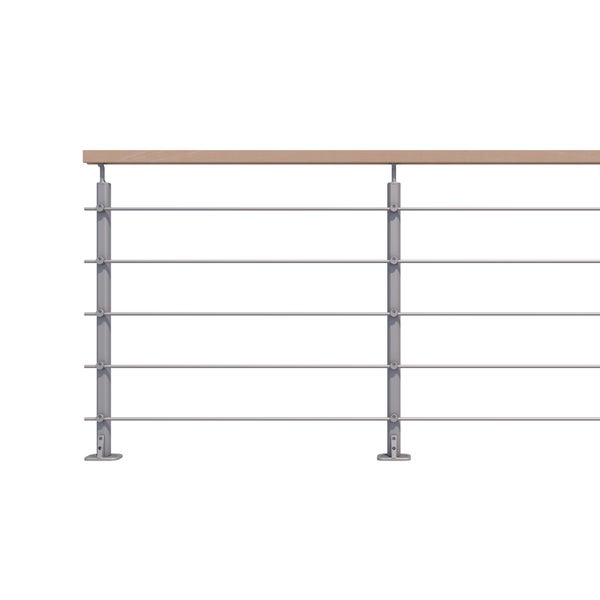 OPALU - Geländerset 2m aus Aluminium Montagefertig Handlauf Buche- Farbe Grau , Bodenbefestigung