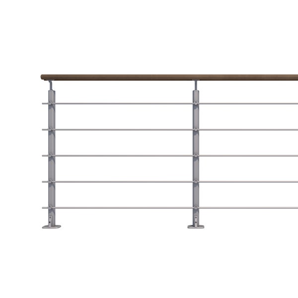 OPALU - Geländerset 2m aus Aluminium Montagefertig Handlauf Kebony - Farbe Grau , Bodenbefestigung