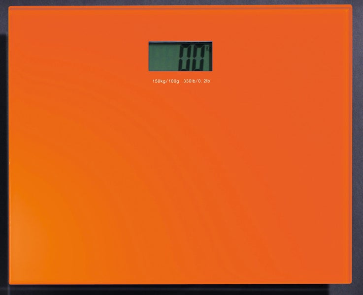 Orangefarbene elektronische Personenwaage aus Glas