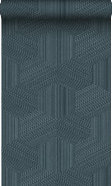 Diese Tapete mit 3D-Muster in Dunkelblau macht jede Wand zu einem wahren Hingucker und passt perfekt in einen modernen Einrichtungsstil.