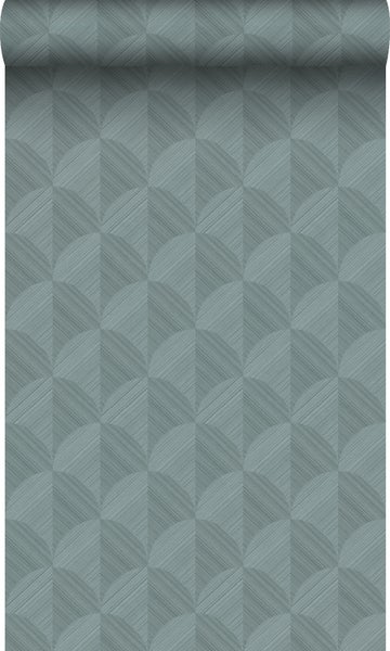 Diese Tapete mit 3D-Muster in Graublau macht jede Wand zu einem wahren Hingucker und passt perfekt in einen modernen Einrichtungsstil.