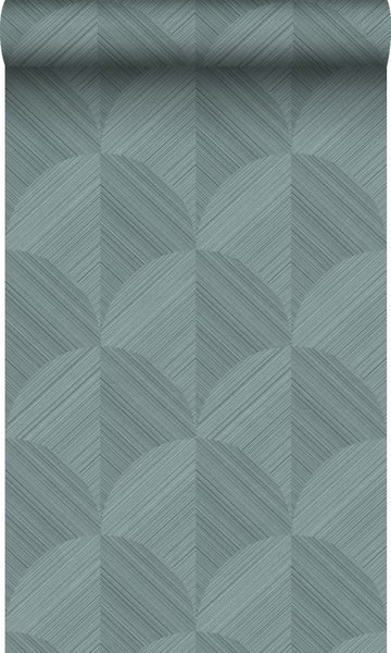 Diese Tapete mit 3D-Muster in Graublau macht jede Wand zu einem wahren Hingucker und passt perfekt in einen modernen Einrichtungsstil.