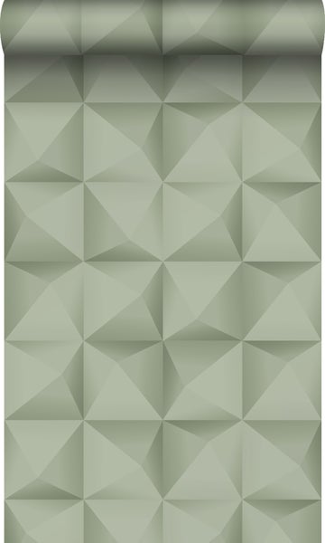 Diese 3D-Fototapete in Hell Graugrün macht jede Wand zu einem wahren Hingucker und passt perfekt in einen modernen Einrichtungsstil.
