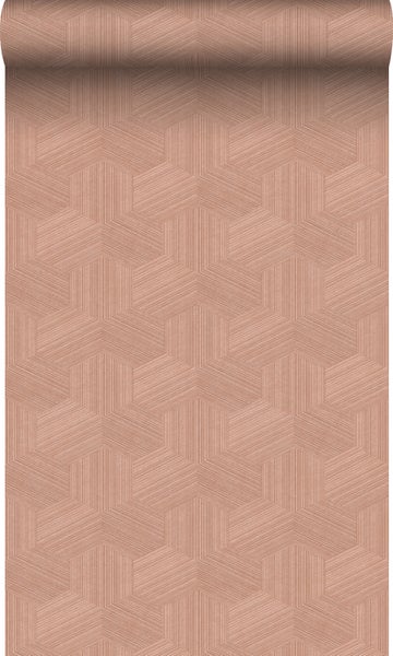 Diese Tapete mit 3D-Muster in Terrakottarosa macht jede Wand zu einem wahren Hingucker und passt perfekt in einen modernen Einrichtungsstil.
