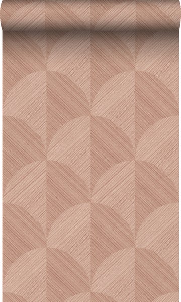 Diese Tapete mit 3D-Muster in Terrakottarosa macht jede Wand zu einem wahren Hingucker und passt perfekt in einen modernen Einrichtungsstil.