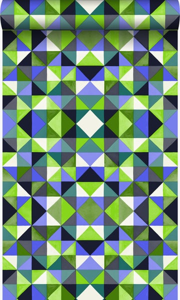 Diese farbenfrohe Tapete mit kubistischem Muster in Grün macht jede Wand zu einem echten Hingucker und lässt eine lebendige Atmosphäre entstehen. Die dezenten Glanz-Effekte verleihen der Tapete zudem eine edle Optik.