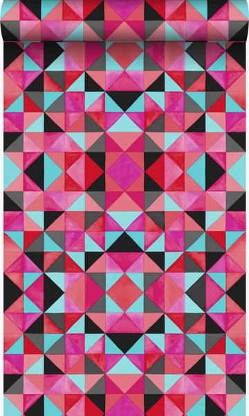 Diese farbenfrohe Tapete mit kubistischem Muster in Rot und Blau macht jede Wand zu einem echten Hingucker und lässt eine lebendige Atmosphäre entstehen. Die dezenten Glanz-Effekte verleihen der Tapete zudem eine edle Optik.