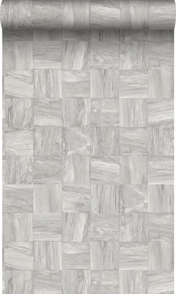 Origin Tapete quadratische Holzstücke Hellgrau 53 cm x 10.05 m
